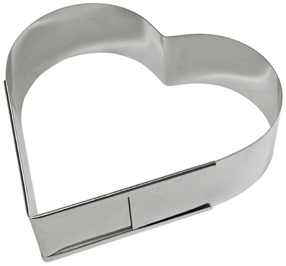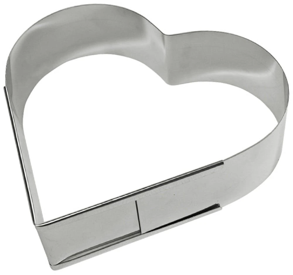 Verstellbarer Backrahmen in Herzform aus Edelstahl ++ Material: Edelstahl ++ Materialstärke: 0,5 mm – 1,0 mm ++ ausziehbar/verstellbar ++ Höhe: 70 mm ++