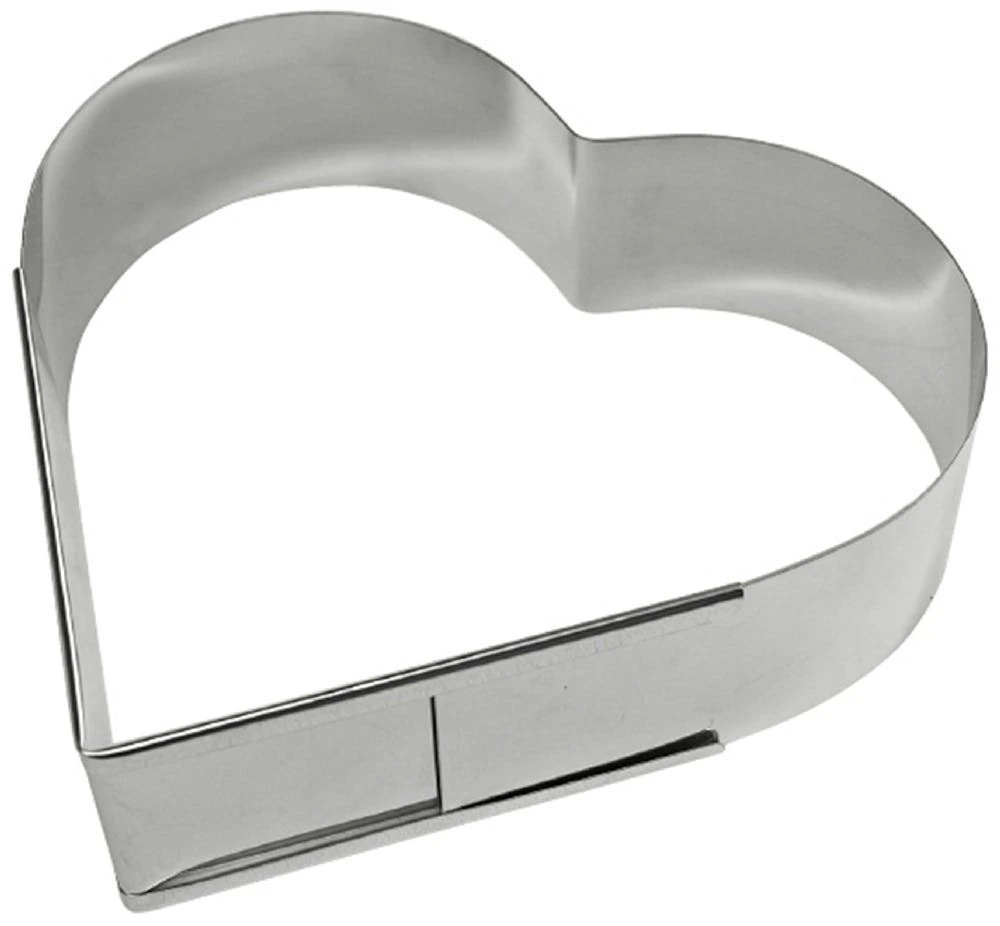Verstellbarer Backrahmen in Herzform aus Edelstahl. ++ Material: Edelstahl ++ MaterialstĂ€rke: 0,5mm – 1,00mm ++ ausziehbar/verstellbar ++ Höhe: 70mm ++