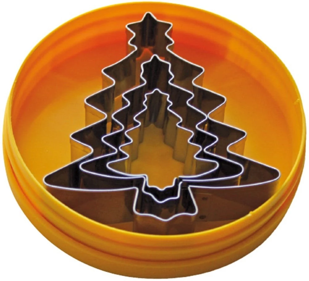 Ausstechersatz aus Edelstahl in praktischer Aufbewahrungsdose. ++ AusfĂŒhrung Tannen ++ Anzahl StĂŒck 3 ++ Höhe (mm): 20 ++ MaterialstĂ€rke (mm): 0,3 ++