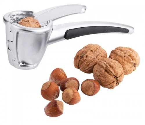 Nussknacker aus Aluminiumguss, Gummieinlage an der Grifffläche, mit Federmechanismus, nicht spülmaschinengeeignet, zum Knacken von Walnüssen, Haselnüssen als auch Paranüssen