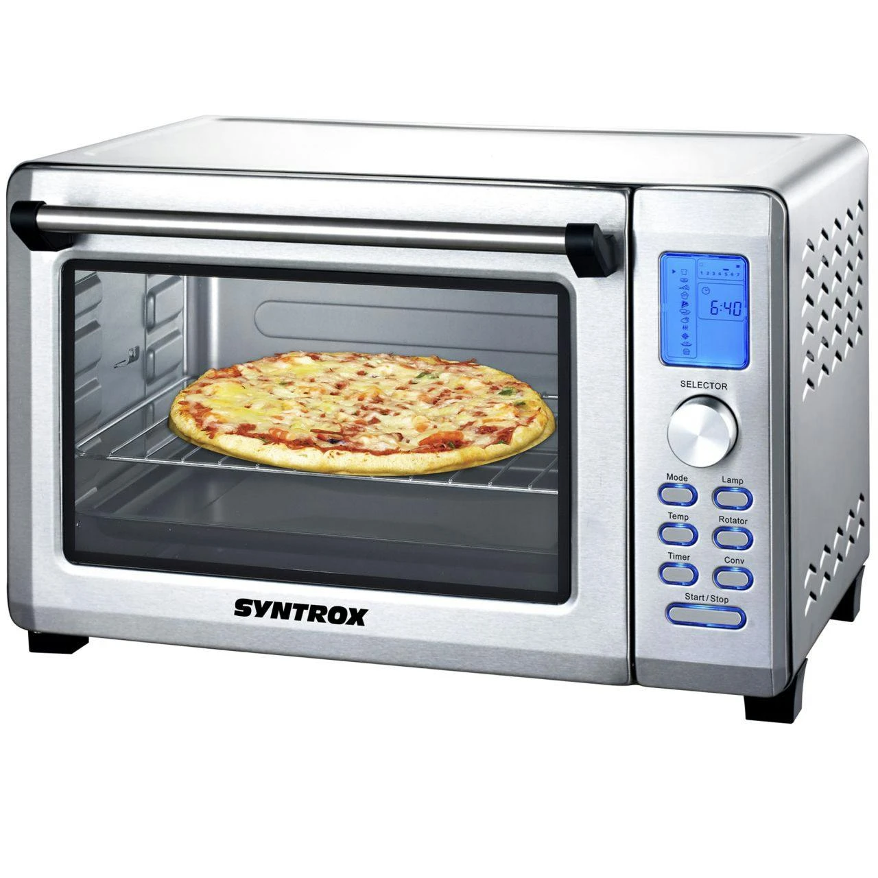 Digitaler 45 Liter Minibackofen von Syntrox Germany überzeugtIn manchen Haushalten lässt es ganz einfach der Platz in der Küche nicht zu, normal große Geräte wie Kühlschränke und Backöfen zu integrieren. Doch gerade solche Geräte sind in dem Küchenbereich unerlässlich. Wir von Syntrox Germany haben die Lösung für Sie. Es gibt in unserem Store unter anderem kleine Kühlschränke und Minibacköfen, die sehr platzsparend sind und daher eine gute Alternative zu den großen Varianten darstellen. Hier bieten wir Ihnen den digitalen Minibackofen mit 45 Liter Fassungsvermögen an, mit dem Sie die verschiedensten Speisen essbereit machen können. Der Minibackofen mit Umluft von Syntrox Germany ist außerdem mit einem Drehspieß versehen, mit dem Sie unter die Hähnchengriller gehen können. Besonders gut geeignet ist der kleine Backofen mit Umluft für Single- und Paarhaushalte. Da reicht die Größe in der Regel vollkommen aus. Der 2000 Watt starke Minibackofen ist ein Multitalent und wird sich als optimaler Helfer in der Küche herausstellen. Entscheiden Sie sich nun für den digitalen Minibackofen von Syntrox Germany und starten bereits nach wenigen Tagen richtig durch.Multitalent der Extraklasse – Minibackofen kann sich sehen lassenSie waren sich gar nicht darüber im Klaren, dass Sie auch mit einem kleinen Backofen die verschiedensten Leckeren fabrizieren können? Der Minibackofen steht dem großen Bruder mit Sicherheit kaum in etwas nach. Sie könnten mit dem Backofen toasten, backen, Köstlichkeiten auftauen und warmhalten, Fleisch zubereiten, fermentieren oder bei niedrigen Temperaturen garen. All das ist mit dem praktischen und modernen Minibackofen aus dem Hause Syntrox Germany möglich. Die Nutzung gestaltet sich auch denkbar einfach. Sie müssen einfach nur den Stecker in die ganz normale Steckdose stecken. Es ist also keine besonders Anschlussdose notwendig, wenn Sie das Gerät nutzen möchten. Nun können Sie die Speisen in den Ofen aus Edelstahl mit Glastür geben. Wählen Sie aus den verschiedenen Programmen aus, um die Köstlichkeit innerhalb der gewünschten Zeit essbereit zu haben. Sie können den Timer natürlich ganz nach Belieben einstellen. Sobald die Zeit abgelaufen ist, wird ein akustisches Signal von dem Minibackofen abgegeben. So wissen Sie Bescheid, dass die Köstlichkeiten nun fertig sind. Der Timer lässt sich auf bis zu 120 Minuten einstellen. Natürlich schaltet sich das Gerät nach der entsprechenden Zeit ganz automatisch wieder ab. Sie können also nichts falschmachen, wenn Sie sich für den kleinen Backofen mit Umluft und Drehspieß von Syntrox Germany entscheiden.Einfache Bedienung des MinibackofensSelbstverständlich wird eine Bedienungsanleitung mitgeliefert, sodass Sie bei Bedarf immer wieder nachschauen können. Letztendlich ist die Bedienung aber selbsterklärend gestaltet. Es gibt auch eine Kontrollleuchte, an der Sie erkennen, ob das Gerät in Betrieb ist oder ob es sich mittlerweile schon ausgeschaltet hat. Dank der Tatsache, dass sich das Gerät automatisch abschaltet, brauchen Sie nicht zwingend immer schauen, wie weit es denn im Backofen gediehen ist. Sie können sich um andere Sachen im Haushalt kümmern und beispielsweise mit dem Staubsauger Staub saugen. Überzeugen Sie sich nun selber von dem einfachen Handling, der praktischen Variante und bestellen Sie sich den hochwertigen Minibackofen zu guten Konditionen online bei Syntrox Germany.Eigenschaften: • Leistung: 2000 Watt • Maße außen (B/T/H) in mm: 553 x 400 x 360 • Größe vom Backblech in mm: 402 x 312 x 20.5 • Anzahl der Programme: 11 (Toast / Bagel / Pizza / Kuchen / Fleisch / Fisch / Kekse / Huhn / warm halten / Auftauen / Langsames Backen / Fermentieren • Timer: 120 Minuten • Maximale Temperatur: 230 ? • Kontrollleuchte: JA • Gewicht mit Verpackung: 13.00 Kg • Nettogewicht: 11.60 Kg • automatische Abschaltung • Endsignal • Backblech • Gitterrost • hitzebeständige Glastür