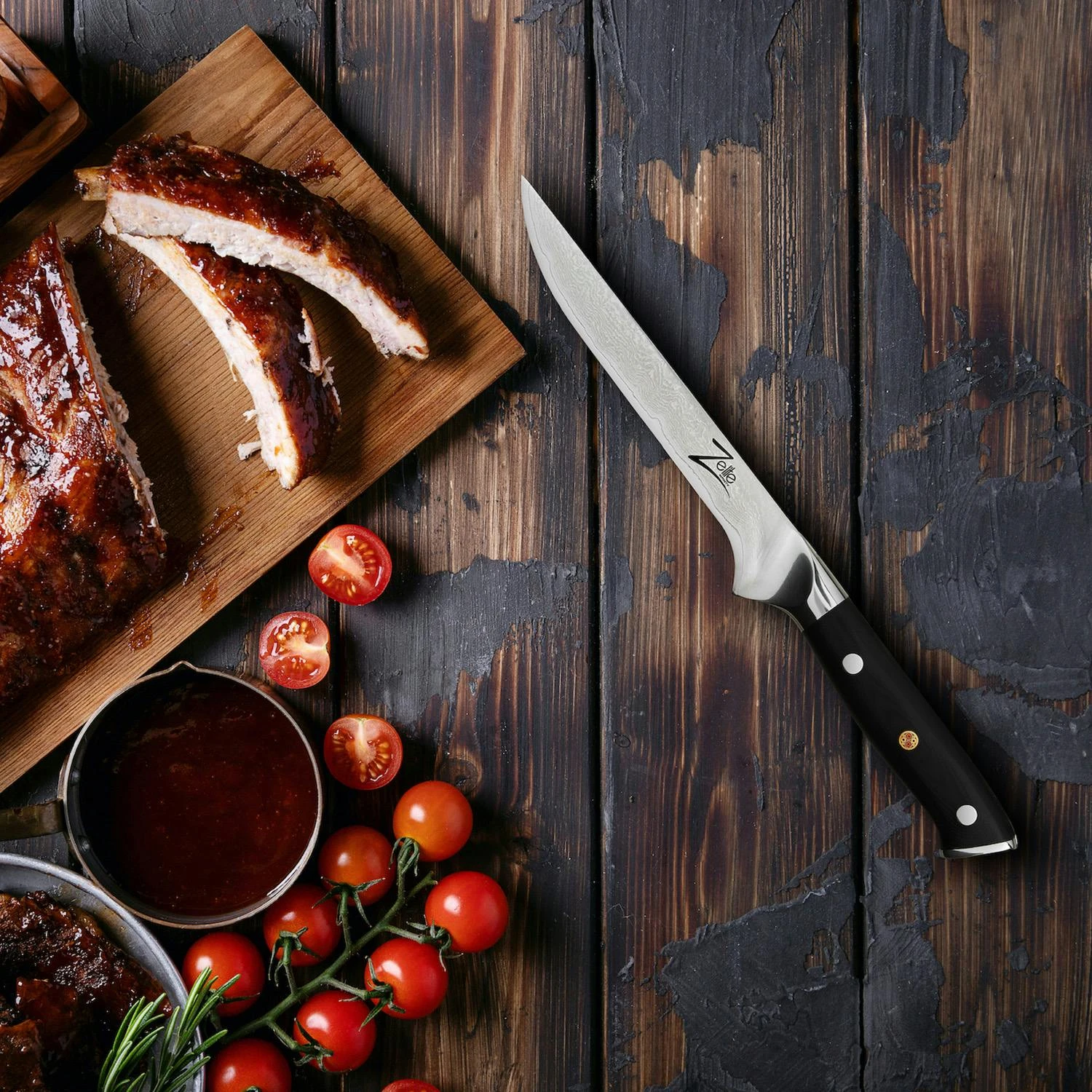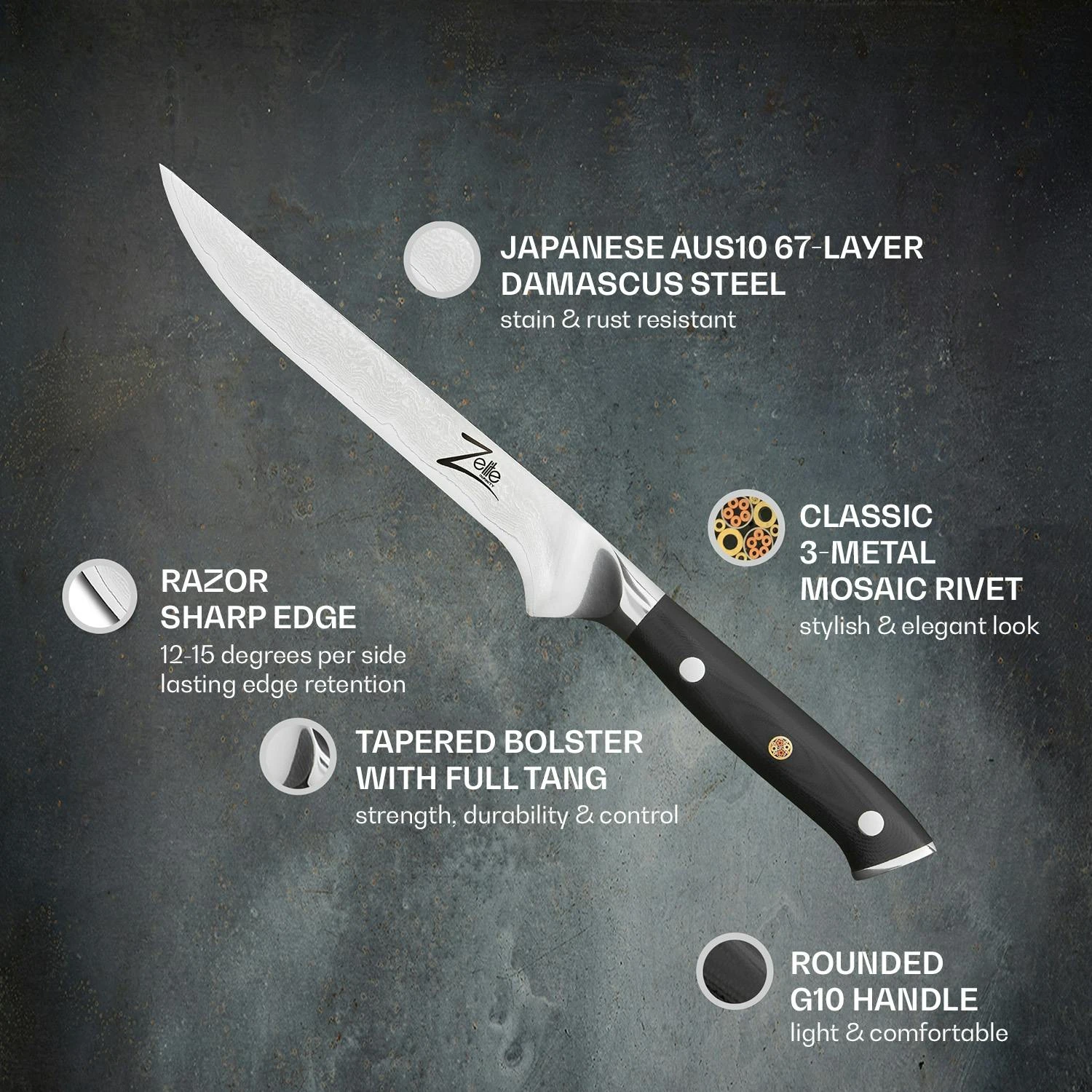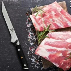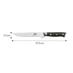 EntgrĂ€ten, Filetieren, HĂ€uten von Fischten, Entbeinen von Fleisch: Mit dem Zelite Infinity by Klarstein Alpha-Royal Japanese Serie 6` Ausbeinmesserkannst du dich beim heimigen Kochgeschehen wie der Star einer Kochsendung fĂŒhlen. Dank der halbsteifen, mittellangen Klinge und der extrascharfen Spitze, welche fast einer Nadelspitze gleicht, ist das exklusiveBoningmesser fĂŒr viele, auch komplizierte, SchnitteinsĂ€tze gemacht. Dank dem vollen Schaft und der guten Ausbalancierung liegt es dabei geschmeidig und sicher in deiner Hand. Ob beim Tomatenschneiden oder beim Tranchieren von Rinderbrust – leistungsstark, langlebig und elegant setzt dieses Messer einen neuen MaĂstab unter den Ausbeinmessern!