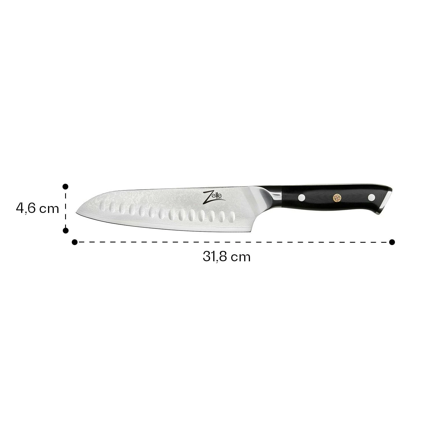 Hervorragende Schnitthaltigkeit verbunden mit Langlebigkeit, ultimativer KlingenschĂ€rfe und einem auĂergewöhnlichen Antlitz: Das ist das exklusive7` Santoku-Messer der Alpha-Royal Japanese Serie vonZelite Infinity by Klarstein. Die fernöstliche Edition des westlichen Kochmessers ist durch ihre breite und flache Klinge der Pionier im Hacken, Zerkleinern und Schneiden. Die Zutaten rutschen dank der Einkerbungen in der Schneide galant vom Messer und landen sicher im Topf.