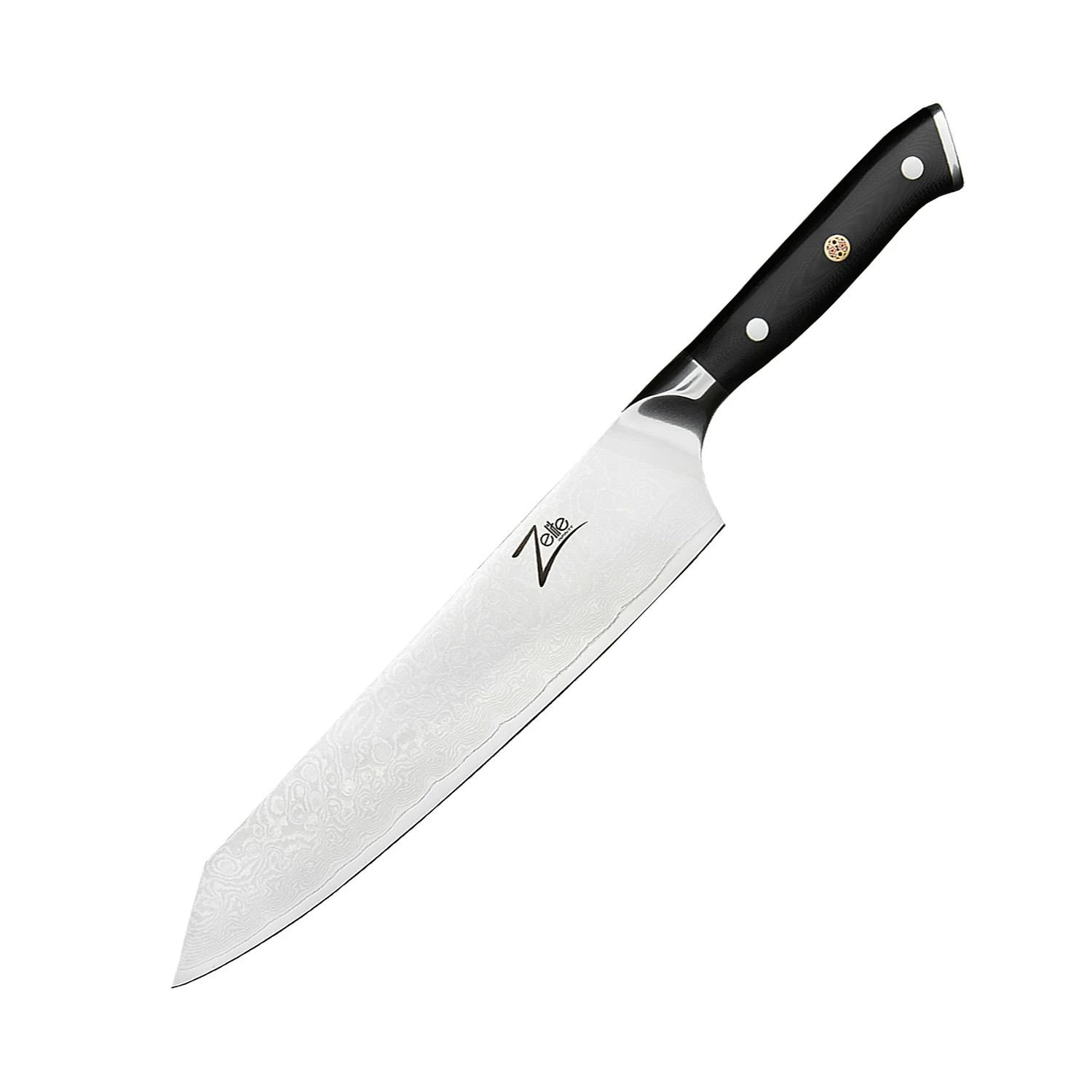 Exklusive PrĂ€zisionsmesser nach japanischem Vorbild: Die handgeschliffeneZelite Infinity by Klarstein Alpha-Royal Japanese Messerserie erfĂŒllt hohe AnsprĂŒche bei jeder Kochkunst. Insgesamt 67 Schichten bilden als hochwertiger, japanischer Damaszener-Stahl ĂŒbereinanderliegend die changierende Klinge. Durch eine perfekt ausbalancierte und ergonomische Formgebung und einen nahtlosen, dreifach vernieteten Griff aus G10-Glasfaser liegen die eleganten KĂŒchenwerkzeuge wunderbar in der Hand. Hier verbinden sich SchĂ€rfe, Haltbarkeit, Gewicht, Kontrolle und Handhabung mit auĂergewöhnlichem Design, perfektioniert durch eine kunstvolle 3-Metall-Mosaikniete im Griff.