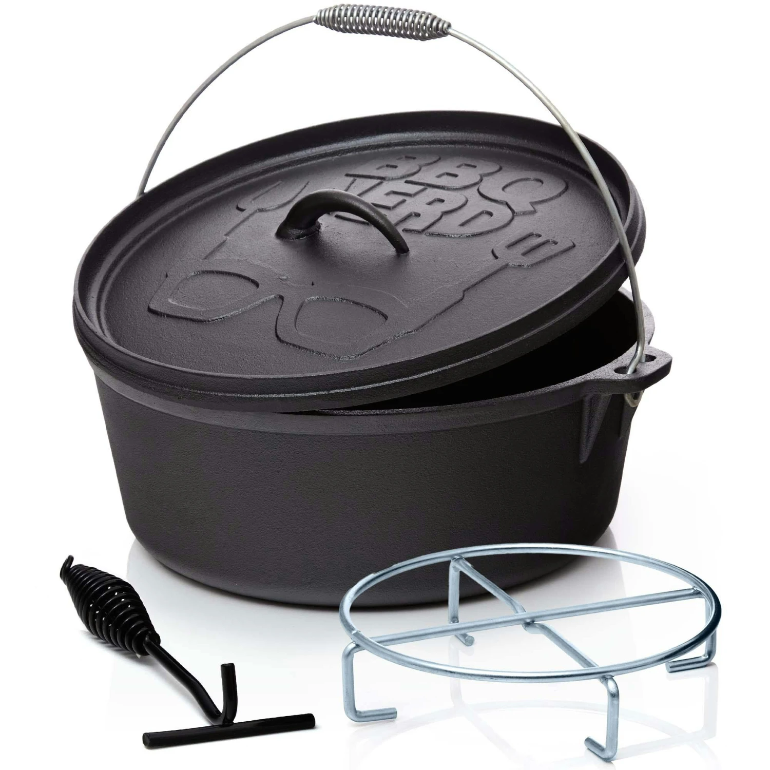 - FEUERTOPF OHNE FÜßE – Schon die Pioniere im Wilden Westen kannten die Vorzüge der Gusseisentöpfe. Wir von BBQ-Nerd© bieten dir einen tadellos verarbeiteten, langlebigen Dutch Oven zum besten Preis-Leistungs-Verhältnis.