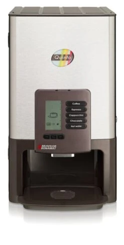Bravilor Bonamat Heißgetränkezubereiter Quinto 322 > für Instantzutaten > mit Wasseranschluss > ausgestattet mit 3 herausnehmbaren Produktbehältern, Digitaldisplay, Kunststofftropfblech, Reinigungs- und Entkalkungsprogramm > Ausführung mit 3 Produktbehäl