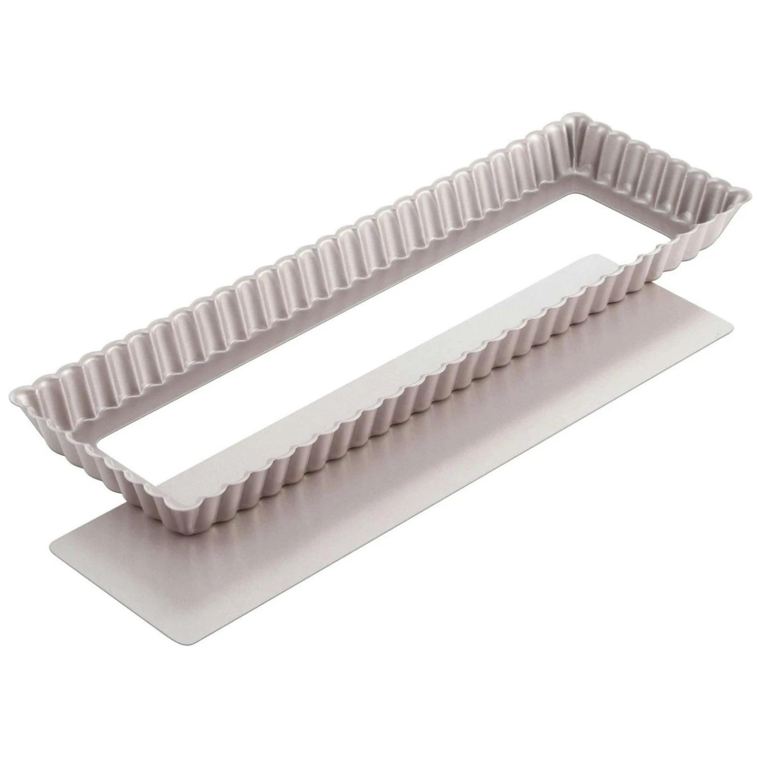 Ob französische Apfeltarte, herzhafte Quiche oder Biskuitkuchen mit frischem Obst – diese 18 cm große Backform in Profi-Qualität begeistert mit ihren vielfältigen Anwendungsmöglichkeiten und einer erstklassigen Qualität. Durch eine spezielle Antihaftbeschichtung aus lebensmittelechtem Silikon sowie einem praktischen Hebeboden wird auch das Entformen der hausgebackenen Kreationen zum Kinderspiel. Für das gewisse Etwas sorgt der Rand der Kuchenform, der nach traditioneller Art mit einer feinen Riffelung versehen ist. Auf diese Weise zaubern Sie leckere Tartes und Quiches ganz nach klassisch französischer Art im heimischen Backofen.