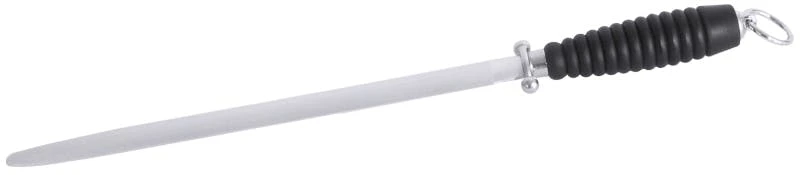 Wetzstahl, oval, aus Chrom-Vanadium, ovaler Querschnitt 20 x 10 mm, hart verchromt, schwarzer ABS-Griff mit Fingerschutz und Ring, schwere Qualität