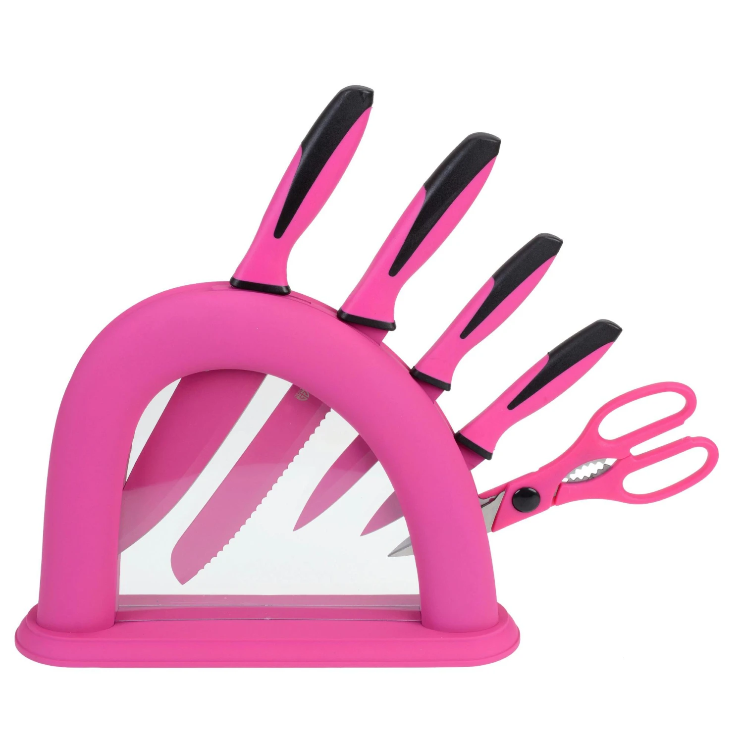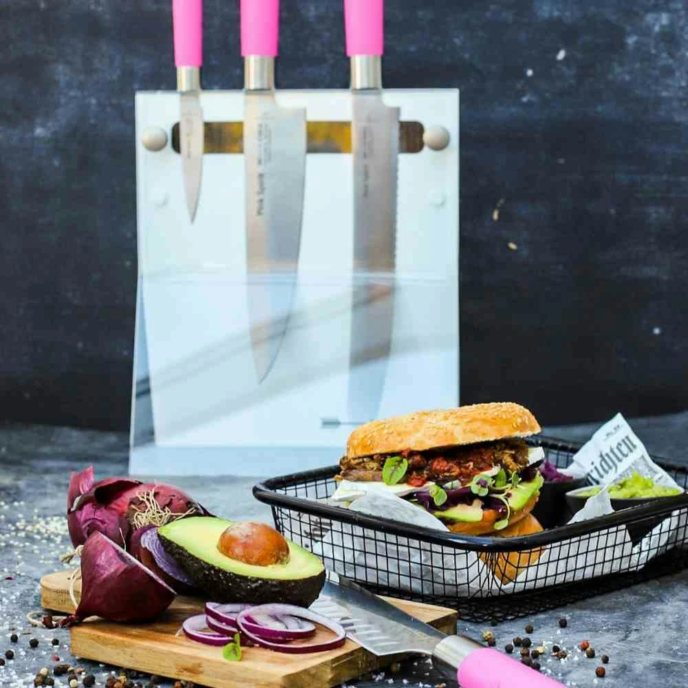 DICK Messerblock 4Knives „Pink Spirit“ weiß Messerblock aus Acryl bestückt mit: – Kochmesser 21 cm – Santokumesser 18 cm – Brotmesser 26 cm – Officemesser 9 cm