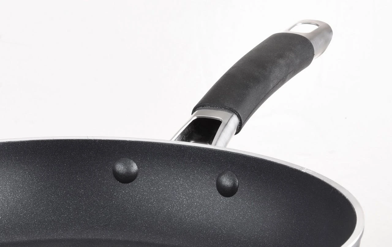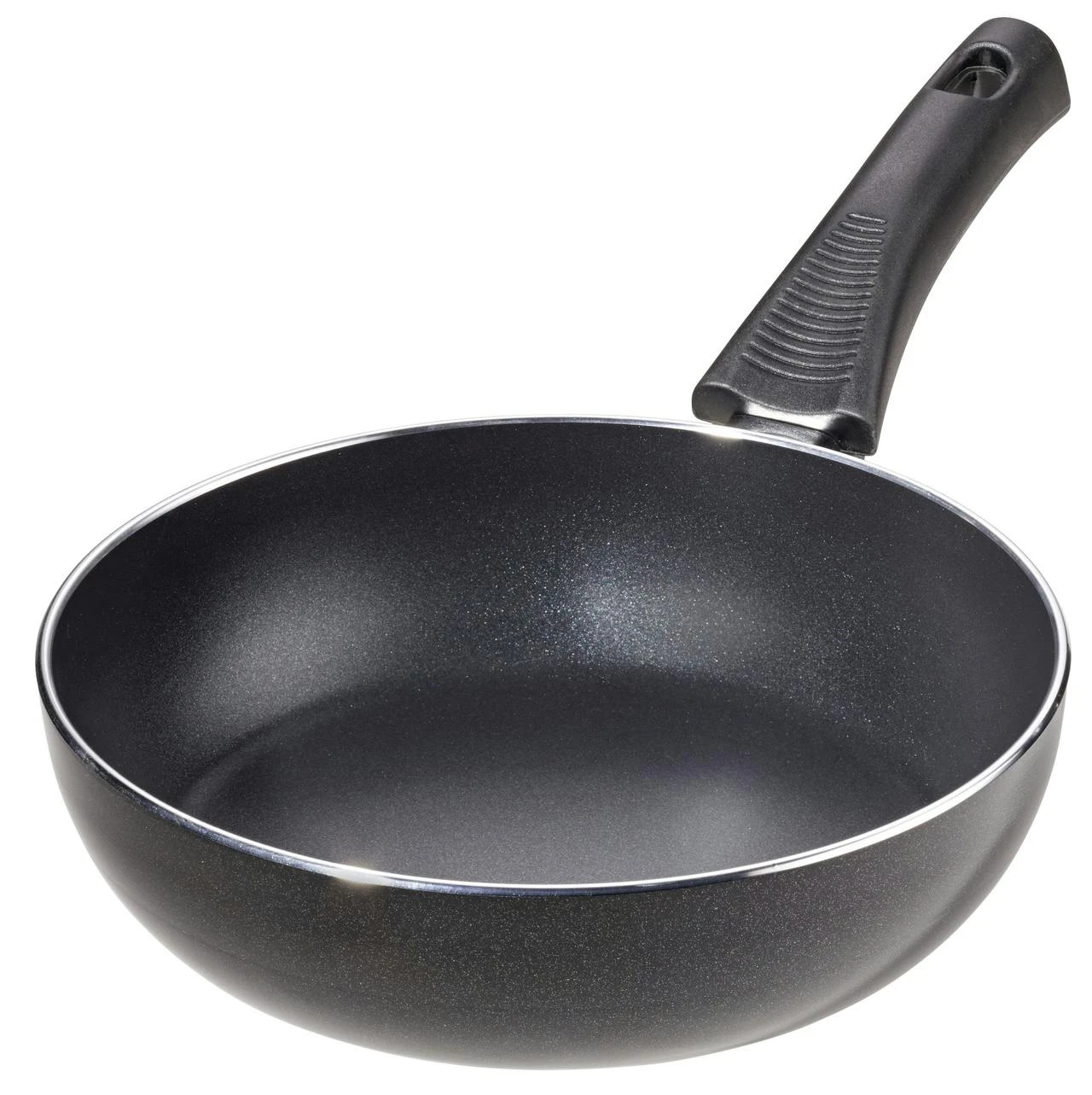 Die METRO Professional Pfanne Gran Gourmet ist aus Aluminium gefertigt und hat ein Durchmesser von 28 cm und eine Höhe von 8.7 cm. Der Boden der Pfanne hat einen Durchmesser von 23.6 cm und eine Dicke von 4 mm. Dank seiner Beschichtung mit Teflon Behandlung ist das Produkt antihaftbeschichtet, sodass die Speisen gut und einfach vorbereitet werden können. Der ergonomische Edelstahlgriff mit Silikonabdeckung sorgt für eine einfache und komfortable Nutzung. Darüber hinaus, ist die Pfanne für Elektro-, Gas-, und Keramikherdplatten, sowie für Ofen (max. 200 °C) und Spülmaschine geeignet.