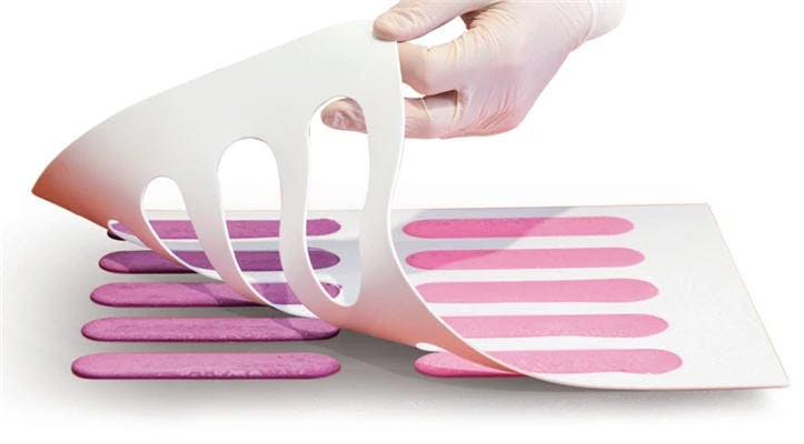 Matte aus flexiblem Silikon in LebensmittelqualitĂ€t mit perfekten und prĂ€zisen Formen, die fĂŒr Schokolade entwickelt wurden aber auch fĂŒr Isomalt, Karamell und andere Massen geeignet sind mit denen Sie die Produktion einfach anpassen können. Auf der Matte sind 36 StĂŒck Ă 36 mm Durchmesser. MattenmaĂ: 390 x 290 x 1,5 mm
