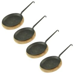 Aufgrund der Materialen Schmiedeeisen und Gusseisen kann es bei den Pfannen zu Farb- und Formabweichungen zu den Fotos und zwischen den Pfannen untereinander kommen.